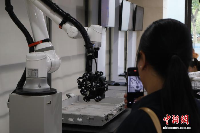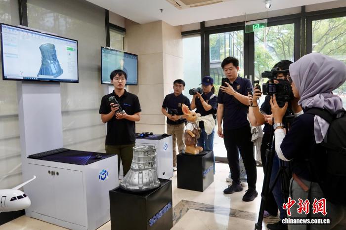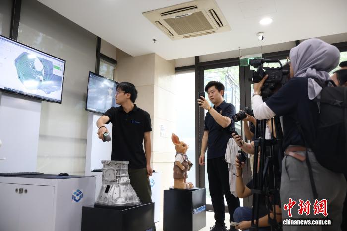 图为任务职员背中中人人教者取媒介代替等先容3维扫描仪技能。中新社记者 刘子琳 摄