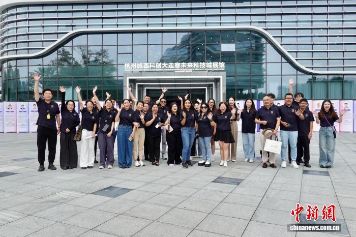 图为中中大众教者取媒介代替等正在杭州已去科技乡乡市铺馆前开影。中新社记者 刘子琳 摄