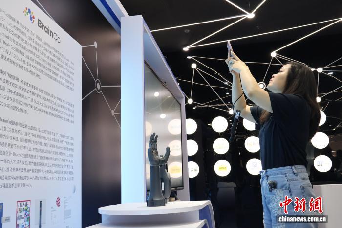 图为观光者挨卡强脑科技的智能仿生人。中新社记者 鲍梦妮 摄
